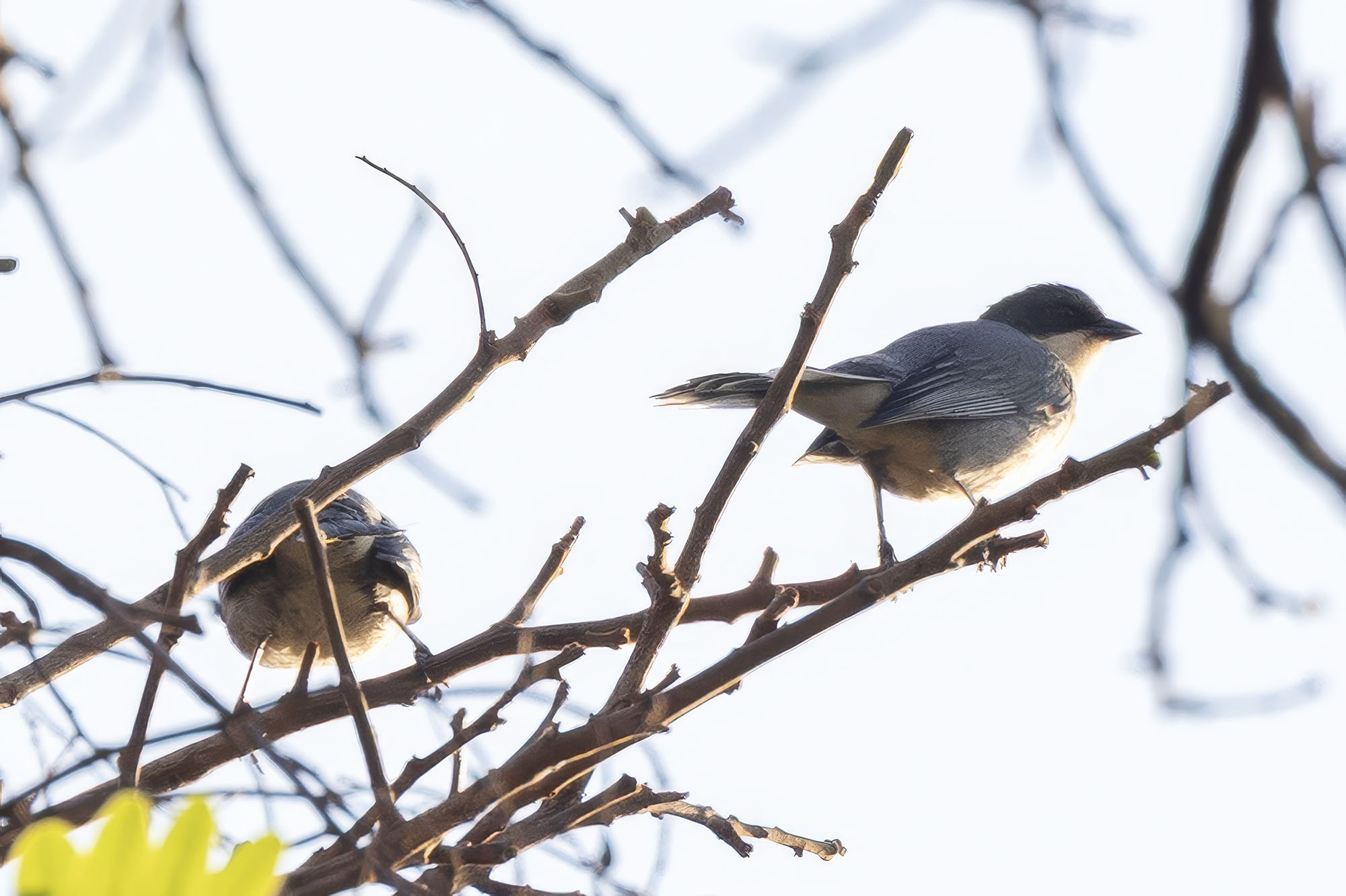 | It is grey above, white below and with a dark head and cheeks. The outer tail feathers are white. | ||||