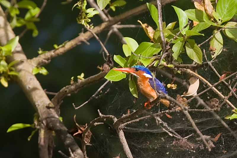 Ghana and Ethiopia The African Malachite Kingfisher is distributed throughout most of Africa south of the Sahara. It is found on lakes, pools, marshes and slow-moving rivers. |