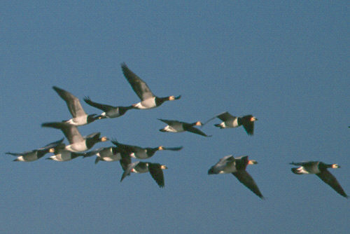 | Caerlaverock where these photos were taken, is the main wintering area for the Svalbard population and was set up