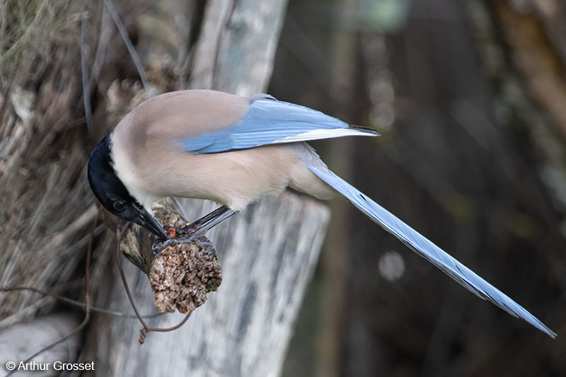 The Iberian Azure-winged Magpie is still lumped with the Asian Azure-winged C. cyanus by some authorities. The former is distributed in the Iberian Peninsula (See the distribution map at Birdlife International while the latter is found at a great distance in the Far East. One story was that Portuguese explorers brought the birds back from the Far East but molecular evidence, smaller size and some plumage and vocal differences suggest that they are two species. |