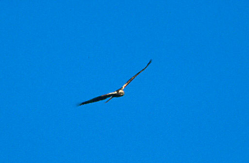 | From below note the broad wings with the rounded tips showing five "fingers". The tail is fairly