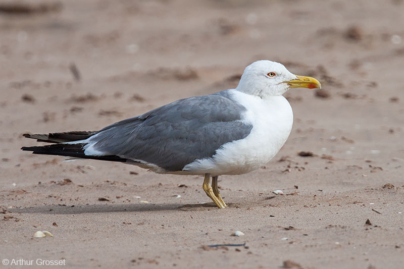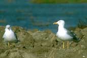| It looks and acts very like Herring Gull but its yellow legs are the most obvious difference. It also has a larger head, more bulbous forehead, flatter crown, fuller neck and stronger bill. It has a red orbital ring. Winter plumaged birds have greyish markings on the head as in the first photo. | ||||