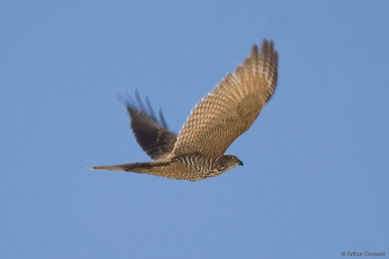 | Adult and juvenile plumage is similar to the slightly smaller Collared Sparrowhawk A. cirrhocephalus but note the rounded tail, the longer neck and the fuller wings. | ||||