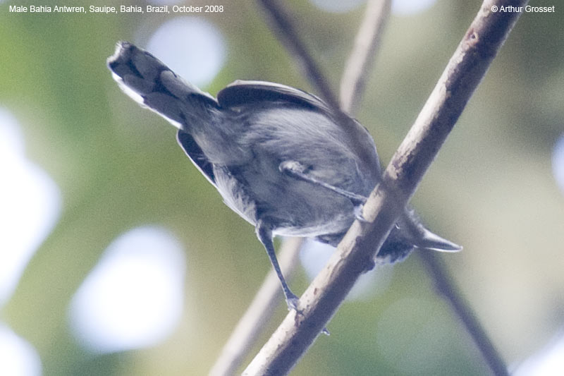| Sauipe, Bahia, Brazil October 2008 The Bahia Antwren is distributed near the coast of Bahia. Previously most authorities restricted the distribution to south of Salvador. However, we saw this bird north of Salvador and the distribution in this area and in the south of Sergipe is confirmed by José Fernado Pacheco (pers. com.) This is now reflected in current distribution maps. See xeno-canto. |