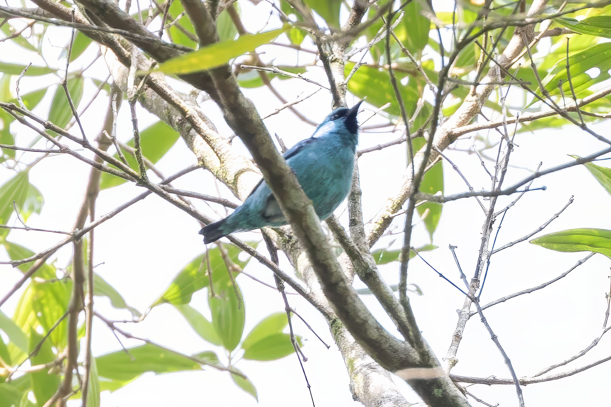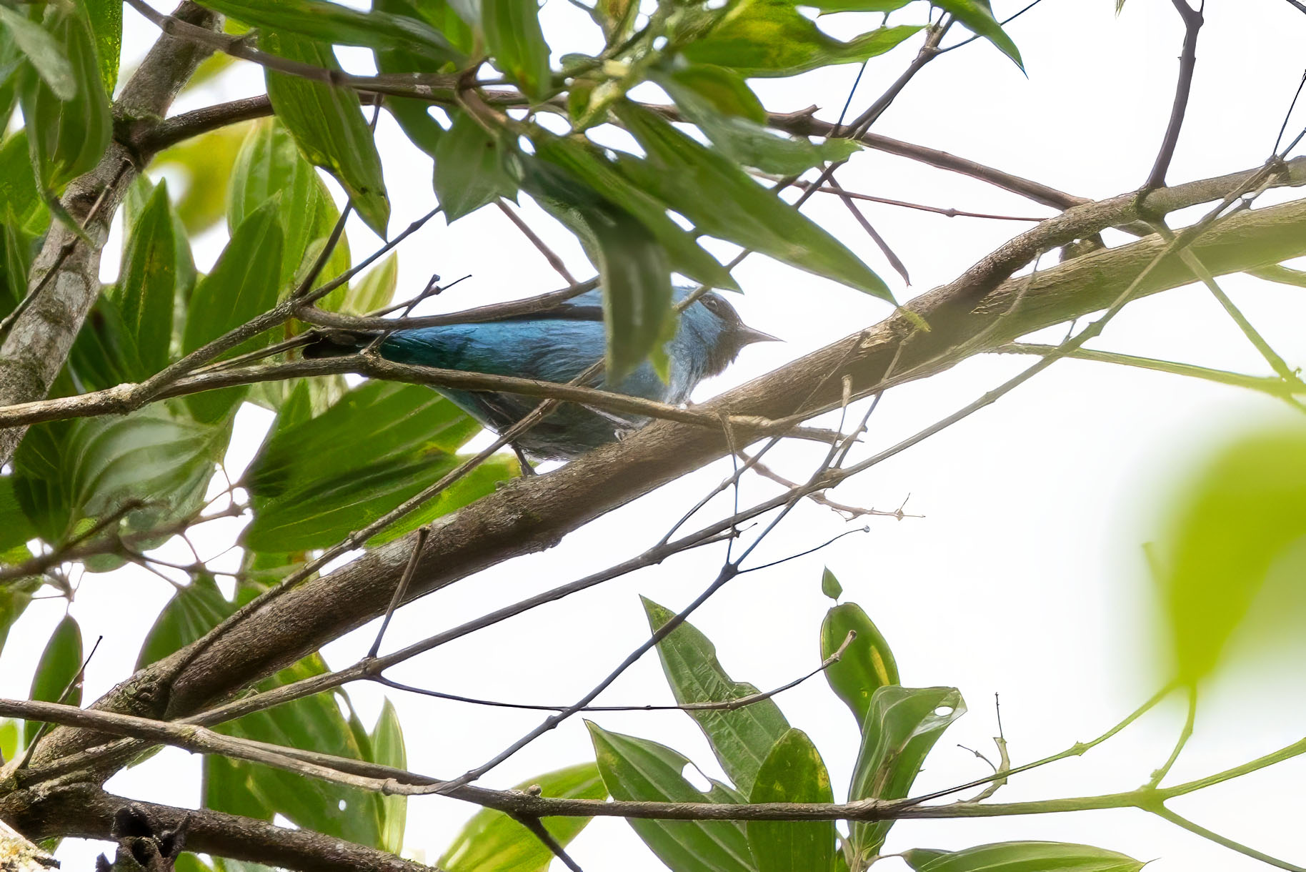 | Classified as Near Threatened it is much rarer than the similar Blue Dacnis D. cayana, it is smaller, with a shorter tail and, as its name implies, black legs. |