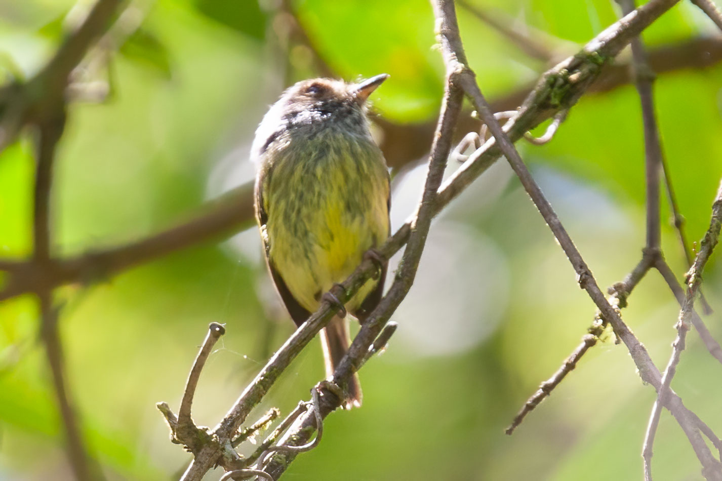 | Brazil The Eared Pygmy-tyrant is endemic to the Atlantic Forest of south east Brazil and adjacent Paraguay and Argentina. It is normally found at forest edges and clearings. |