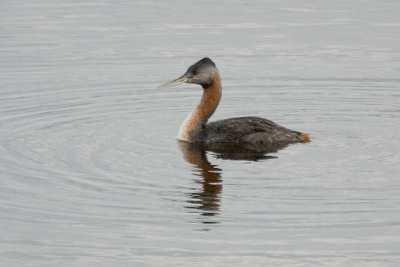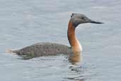| It is very large for a grebe. The dark head contrasting with the reddish neck is distinctive. Photo 1 shows an adult in breeding plumage while photo 2 show the non-breeding plumage with reduced red on the neck, white on the breast and a yellowish bill. Both these photos were taken on the same day, 31st August 2004 at Taim, Rio Grande do Sul, Brazil, so some birds were in breeding plumage ahead of others at that date. | ||||