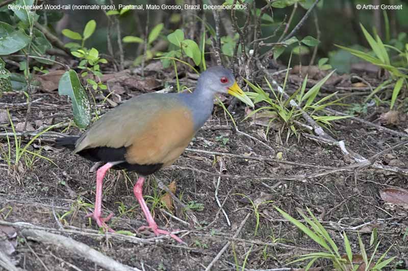 cajaneus Brazilian name: saracura-três-potes Pantanal, Mato Grosso, Brazil One of the larger Neotropical rails and the only Aramides with head and neck entirely grey. Like all rails, it is shy and secretive but will venture out into the open if reasonably close to dense cover at the edge of mangroves or a swamp. |