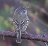 | It has a pale iris, whitish lores and a narrow eye-ring. Olive above, the wings have two conspicuous white to buffy wing-bars. Below it is whitish with grey streaks on throat and breast. | ||||