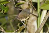 The Plain Antvireo is distributed from Mexico through Central America and into tropical South America with the exception of the Amazon Basin. See the distribution map at xeno-canto. It is generally found in humid, montane forest but also occurs in deciduous forest and secondary woodland. |