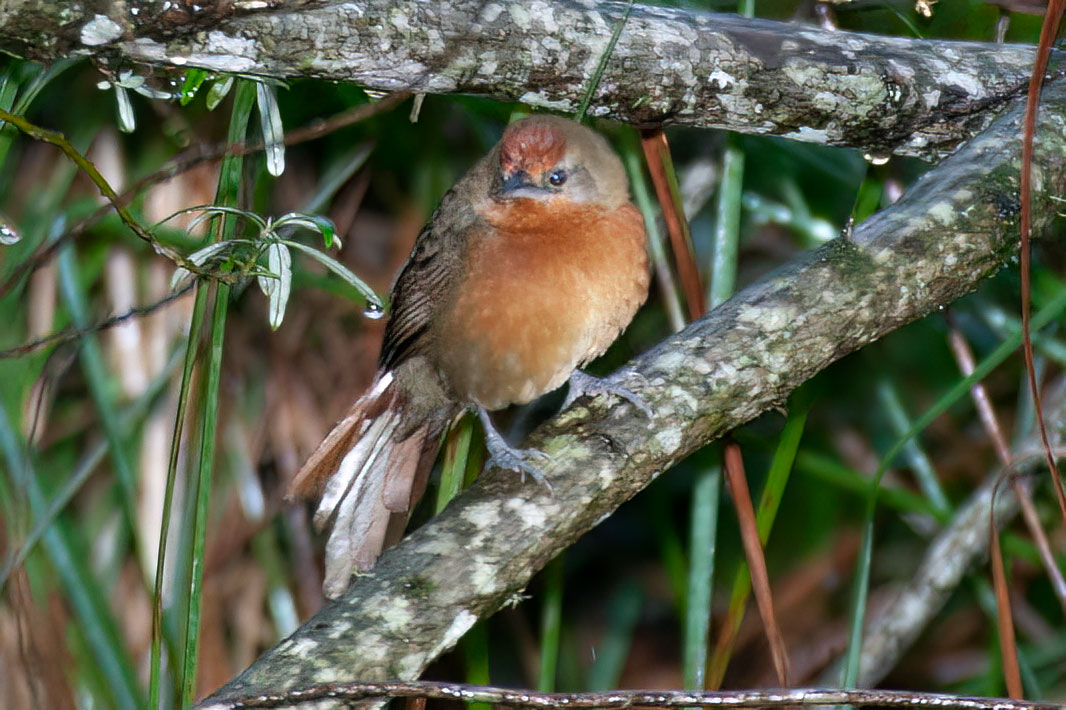 | It was previously lumped with Orange-eyed Thornbird P. eryrophthalmus. These photos show the deep rufous crown, throat and breast as well as the rufous outer tail feathers. It also has a deep red iris. These features differentiate it from the more northerly Orange-eyed Thornbird. | ||||
