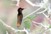 | The scientific name is derived from khrusolampis - Greek for a glow-worm and mosquito - Spanish for a little fly reflecting the size and sound of the hummingbird.There are recordings on xeno-canto, a distribution map from NatureServe and additional information available via Avibase. There is a page with excellent photos on Wikiaves. | ||||