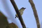 | Underparts are described as "white, tinged pale yellow on crissum" (Ridgely & Tudor) or "white; sides tinged grayish; under tail coverts yellow" (Hilty & Brown). However, the first and second photos show that the breast and flanks can be yellow or tinged yellow. It is found at low and middle heights on forest borders and secondary woodland in tropical South America |
