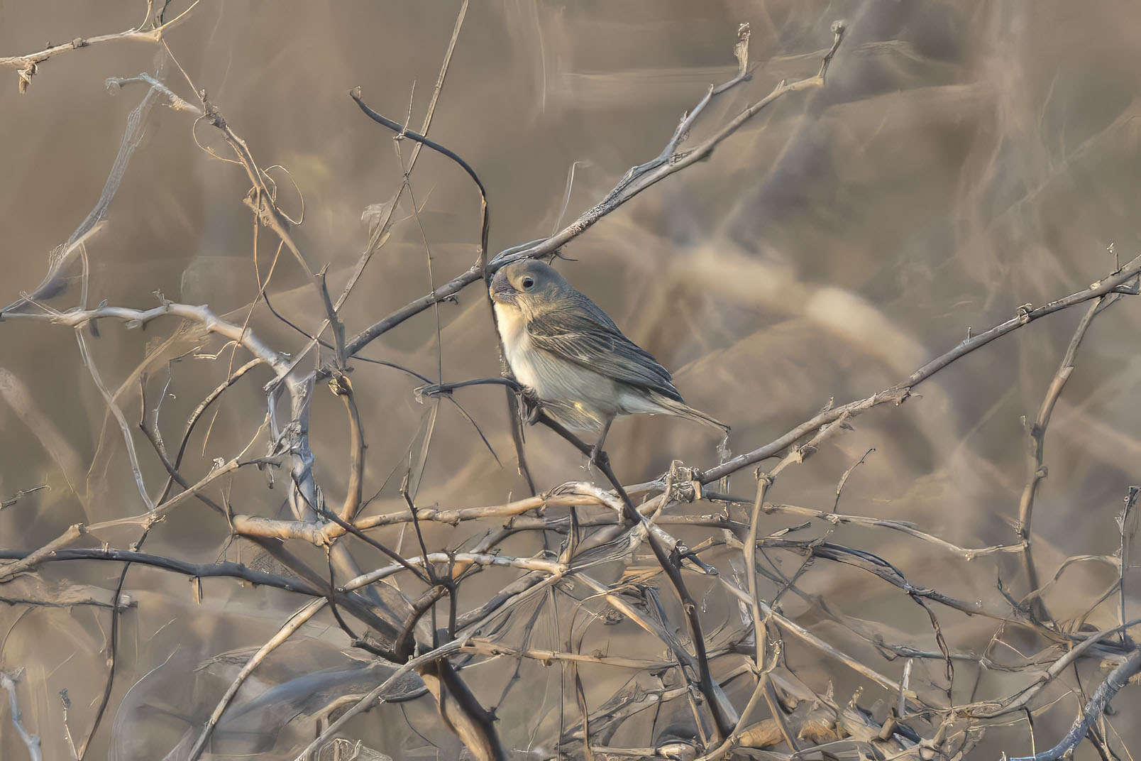 | Chaparri, Lambayeque, Peru October 2018 The Sulphur-throated Finch is distributed in south-west Ecuador and north-west Peru. See the distribution map at Birdlife International. It is found in desert scrub below 300 metres. |