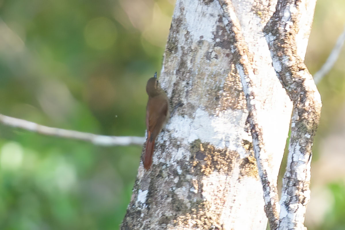 | It is the smallest woodcreeper and with its upturned bill it looks a bit like a xenops. It has a thin buffy supercilium and the upperparts are rich brown to cinnamon-rufous. | ||||