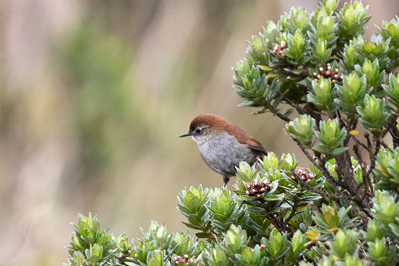 | Ecuador and Peru The White-chinned Thistletail is distributed in the Andes from extreme western Venezuela through Colombia and Ecuador to central Peru. It is found in shrubby undergrowth near the treeline and in Polylepis woodland mainly between 2,800 and 4,000 metres. |