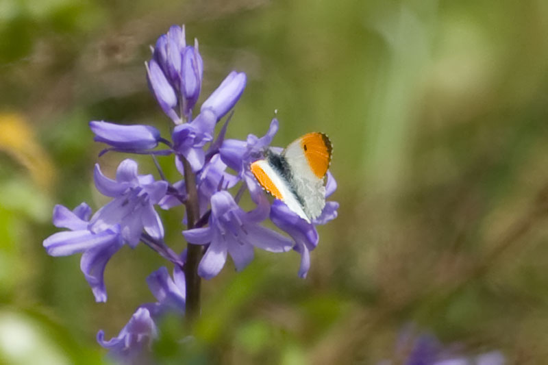 England May 2008 The Orange-tip butterfly is seen in spring and early summer from April to June. The male, as seen in these photos, is more obvious with its orange-tips to the wings. The female lacks these tips and could be mistaken for a Small or Green-veined White at a distance. |