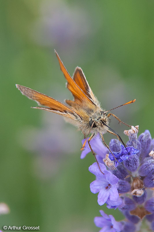 | Monks Eleigh, Suffolk, England July The Small Skipper is distributed throughout most of Europe. In the UK it is found only in England and Wales. They are usually in or near tall grassland and can be found in gardens. The caterpillar feeds on the grass known as Yorkshire Fog of which I have a small patch in my garden in most years. |